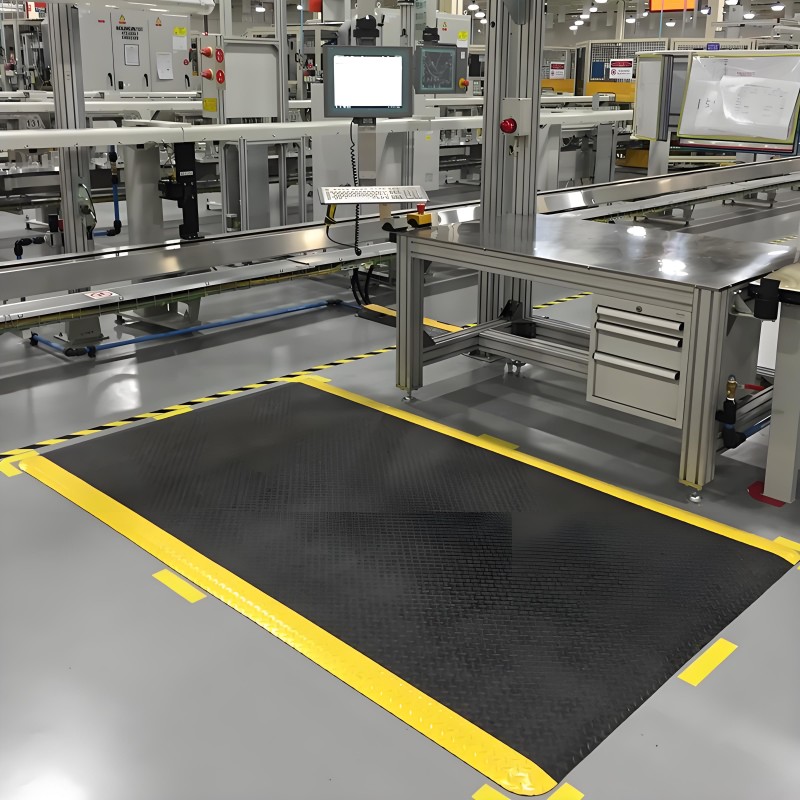 Las alfombrillas antifatiga son alfombrillas especializadas diseñadas para brindar alivio y comodidad a las personas que están de pie durante largos períodos de tiempo. Estas alfombras se usan comúnmente en lugares de trabajo como fábricas, almacenes, cocinas, tiendas minoristas y otros entornos donde se requiere estar de pie durante mucho tiempo.